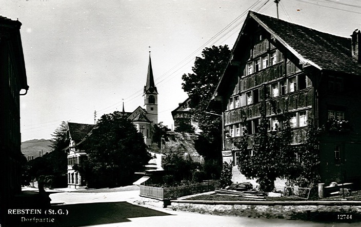 WeinbauDer Weinbau ist seit dem 9. Jahrhundert im Rheintal anzutreffen. In Rebstein dürften die Reben aber erst im 13. Jahrhundert gepflanzt worden sein. Der Weinbau wurde zum eigentlichen Brotverdienst der Dorfleute, allerdings eine sehr vom Wetter und von der Vegetation abhängige Einnahmequelle. In der zweiten Hälfte des 19. Jahrhunderts änderten sich mit dem Aufschwung der Stickerei die wirtschaftlichen Grundlagen. Waren vorerst die Rebsteiner Lohnsticker und Fergger von auswärtigen Industriellen abhängig, schwangen sich nun manche zu Fabrikanten und Exporteuren auf. Die einstige Weinbausiedlung wandelte sich in ein wohlhabendes Industriedorf. Die Melioration der Rheinebene in den Jahren 1941 bis 1953 ermöglichte die Aussiedlung der Landwirtschaft aus dem Dorfkern. Die neugewonnenen Flächen dienten der Ansiedlung zahlreicher Gewerbebetriebe. |